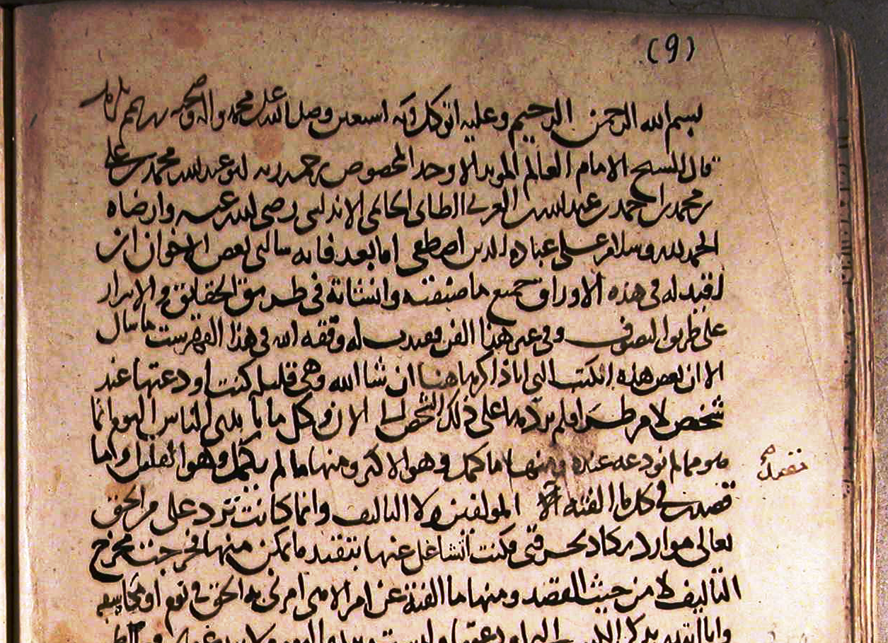[بداية الصفحة الأولى من رسالة الفهرست من مخطوطة يوسف آغا 7838]بداية الصفحة الأولى من رسالة الفهرست من مخطوطة يوسف آغا 7838، وهي مكتوبة بخط الشيخ أبي المعالي صدر الدين محمد بن إسحق القونوي.