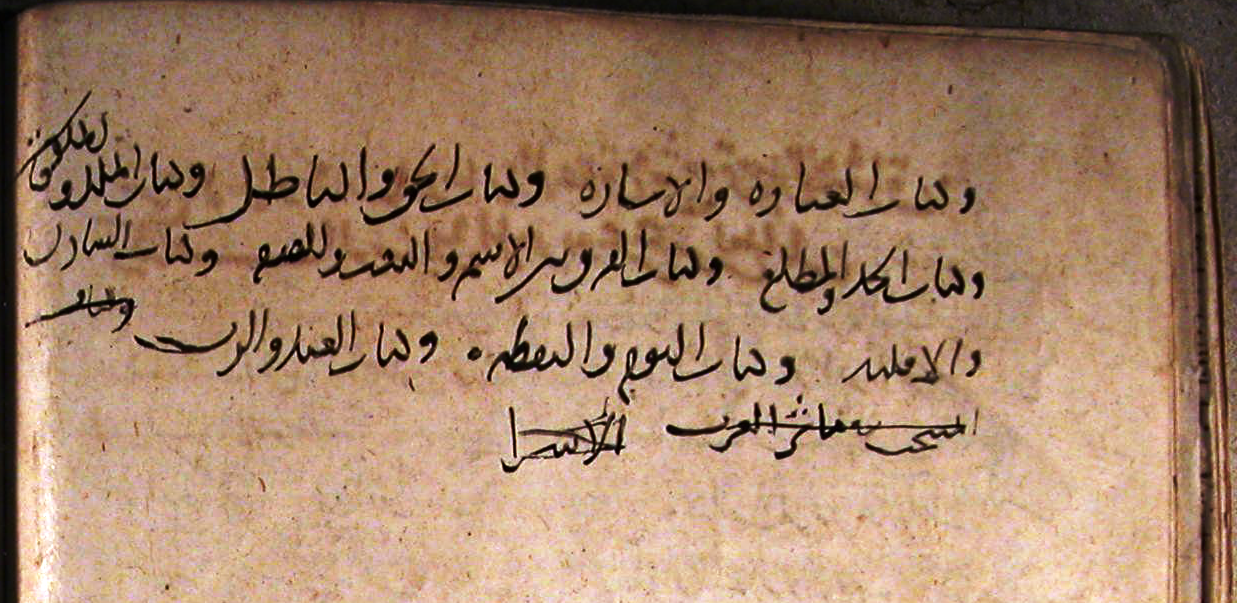 [الصفحة الأخيرة من رسالة الفهرست من مخطوطة يوسف آغا 7838]الصفحة الأخيرة من رسالة الفهرست من مخطوطة يوسف آغا 7838، ونلاحظ اختلاف الخط قليلا عن بداية المخطوطة مما يشير إلى أنها أكملت على عجل، وربما يكون ذلك بسبب كونهم على سفر كما ذكرنا أعلاه.